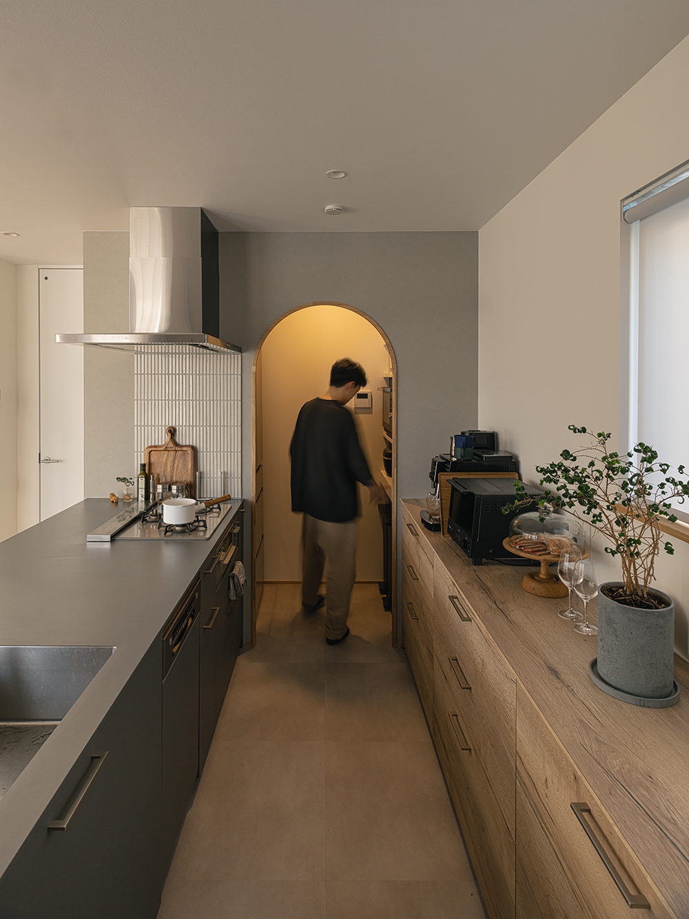 ヌック入り口のアーチは玄関横の手洗い場やヌック正面のパントリーと合わせた、設計スタッフからの提案で、ご夫婦がイメージするデザインテイストで室内に統一感をもたせています。
