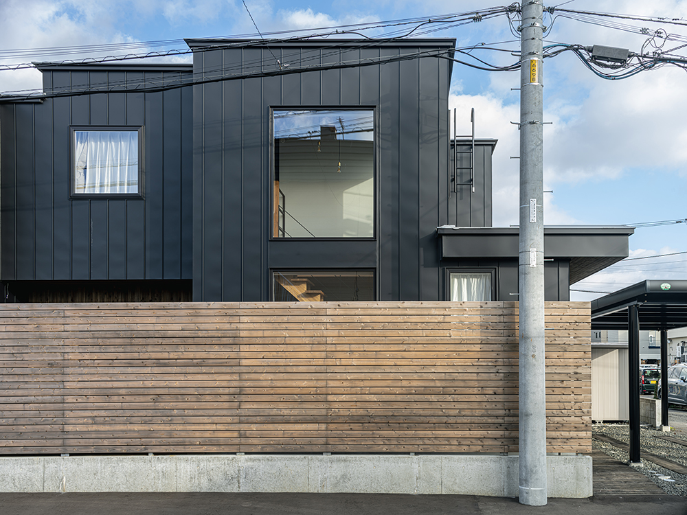 それに伴い設計スタッフは、1階居住スペースの道路に面した側に、中が見えない程度に隙間を空けた木塀を設置。