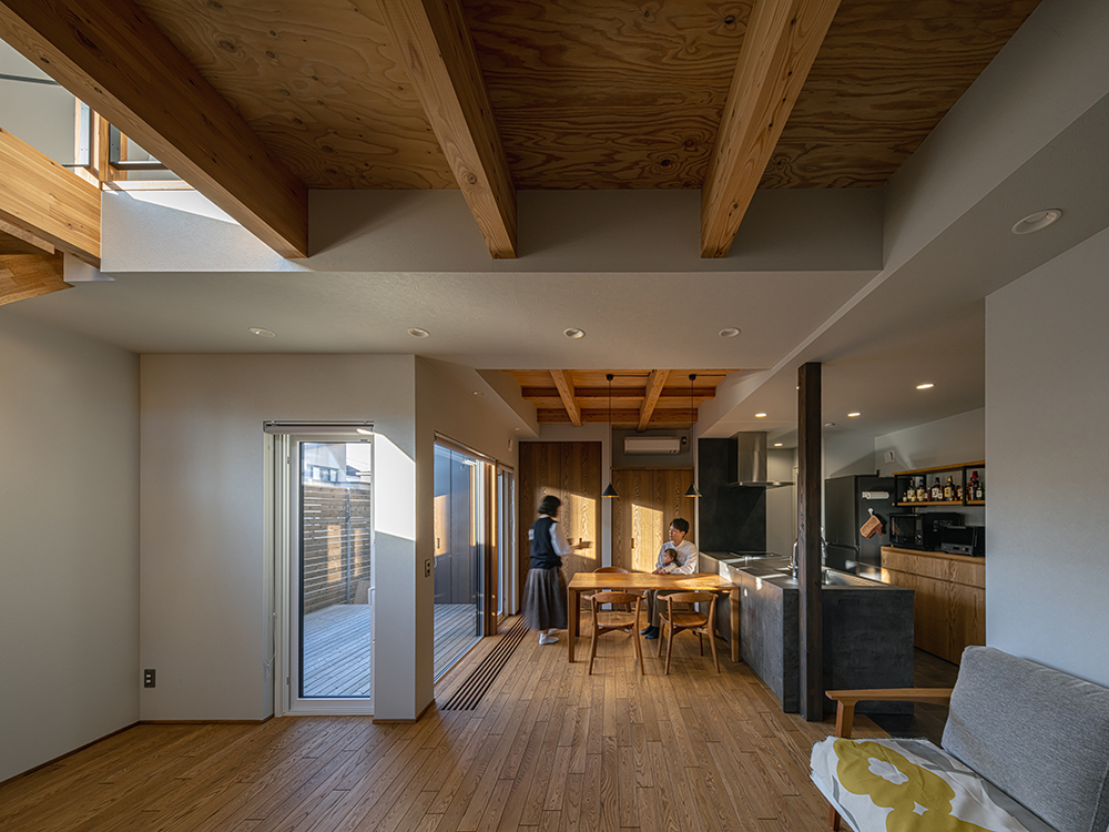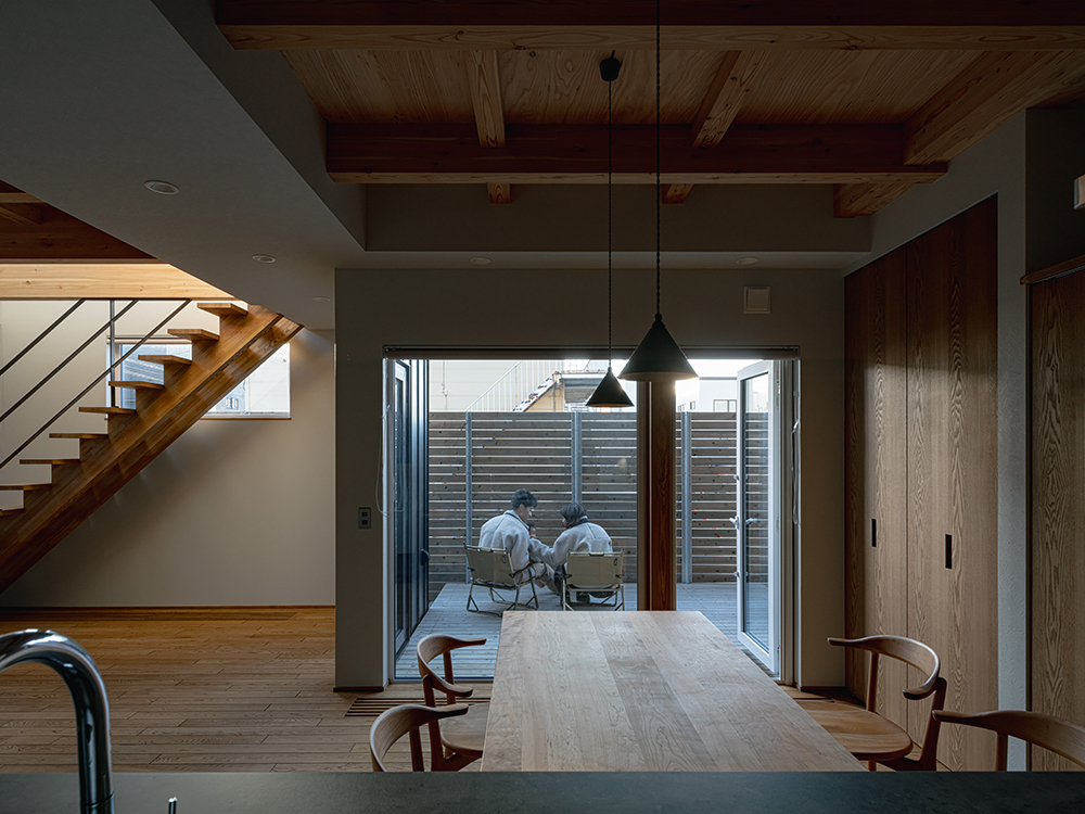 さらにダイニングと木塀との間にウッドデッキを設けることで道路から距離をとり、リビング、ダイニングともに周回からの目線が気にならないよう工夫しました。