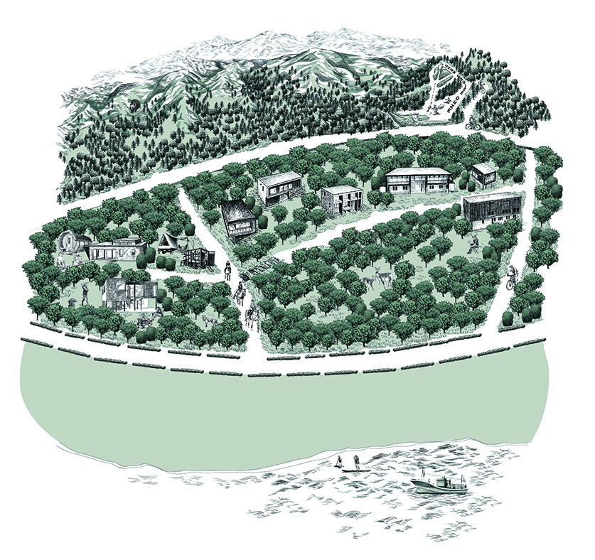 同時に、この山を「北海道の暮らしが集まる山」として成立させるため、商業施設の構想も加えて建物配置や動線計画など全体のプランニングを自社で開始。