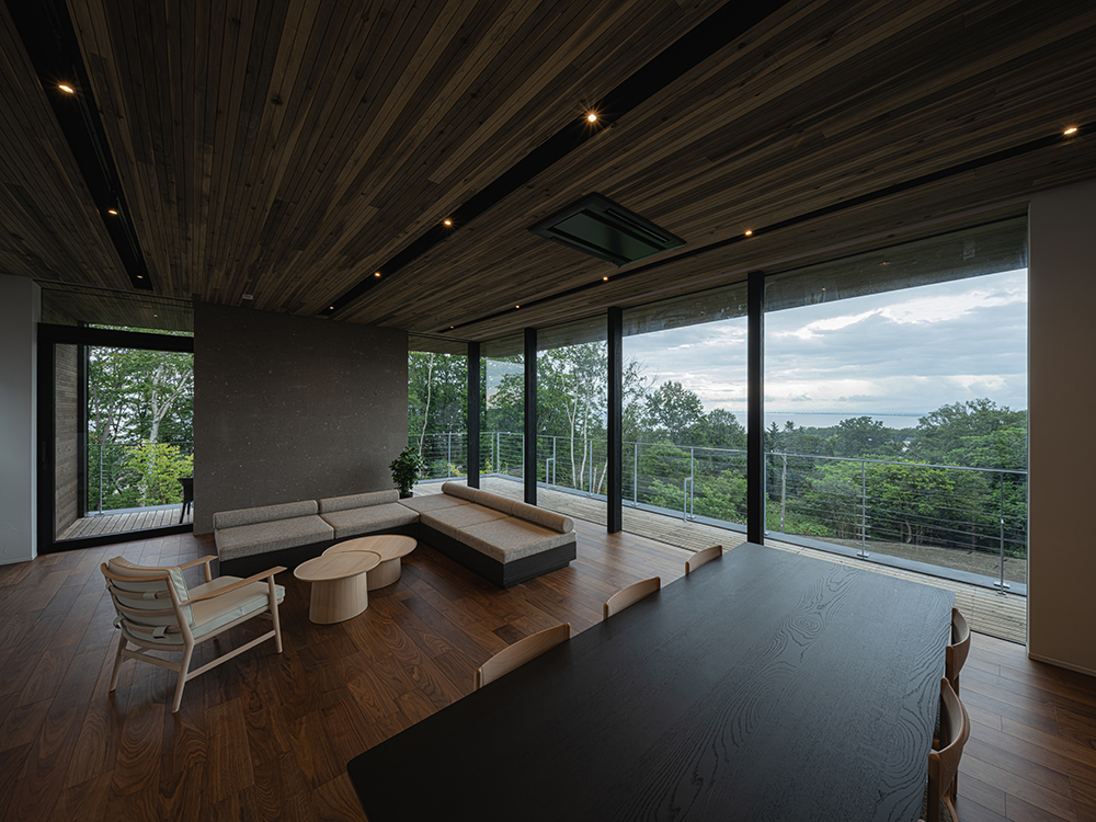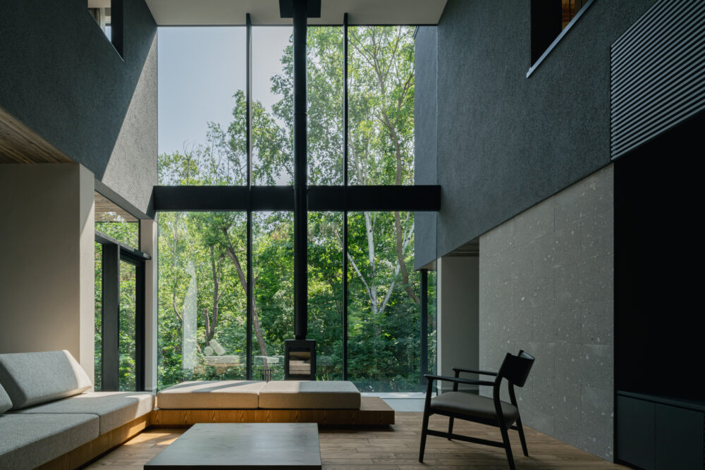 吹抜けの窓から森の四季を体感できるヴィラ