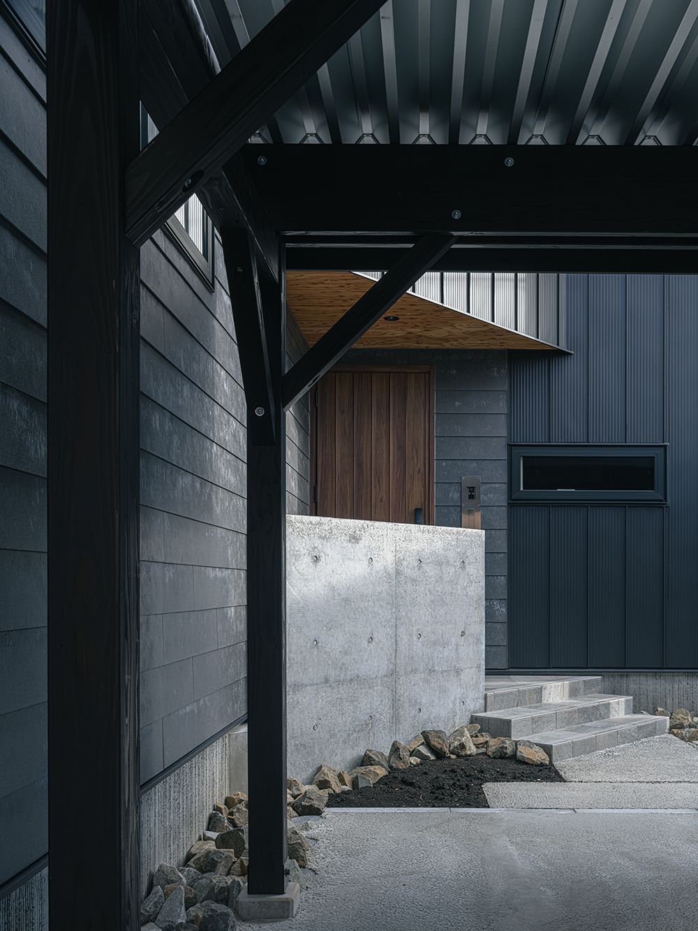 斜めの開口部と相まってL字型+αの特徴的なプロポーションとなりました。
