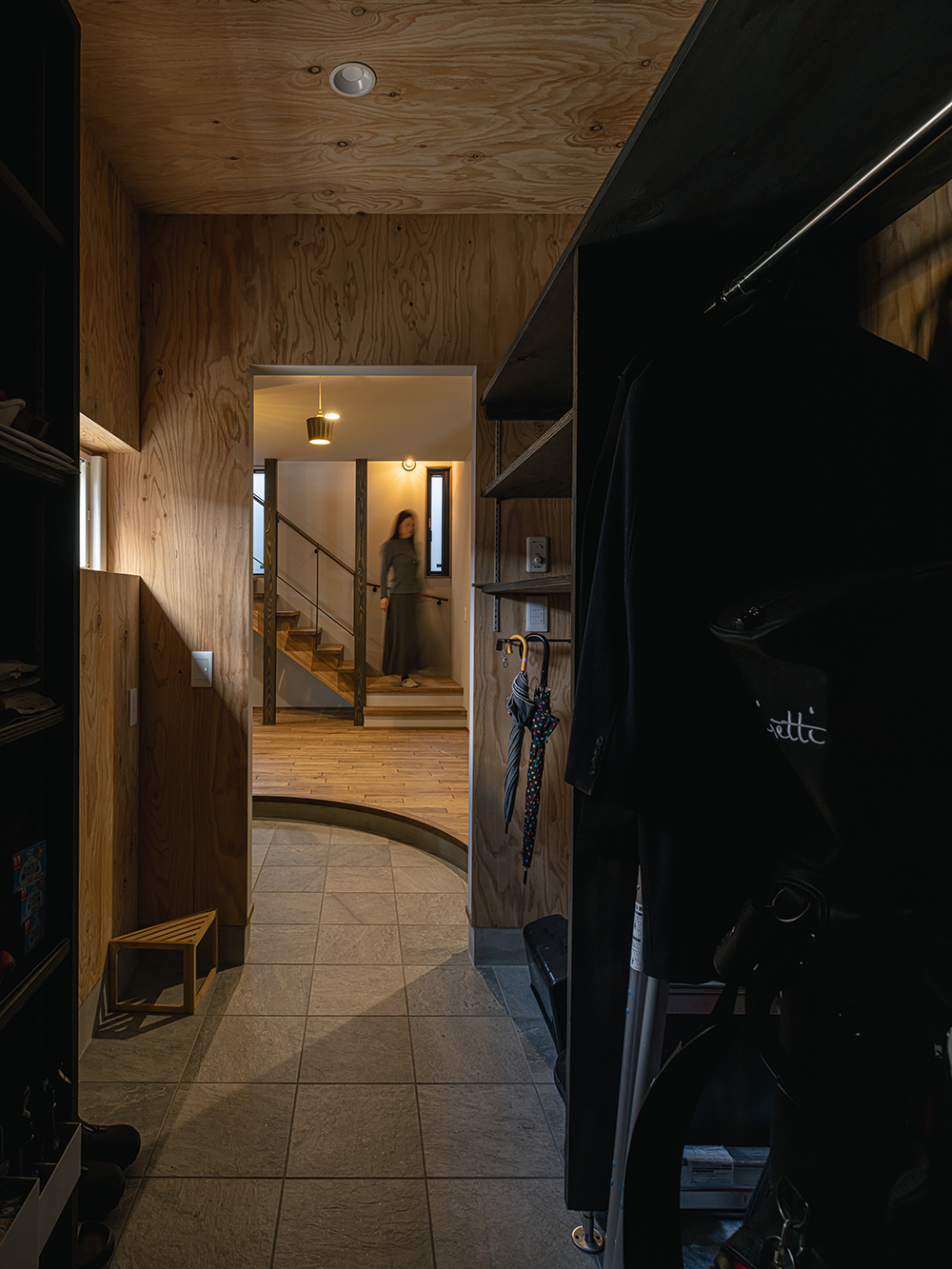 上がり框をアール形状にしたのは、愛犬と並んで歩けるよう幅を検討し、蝶野さんが提案した