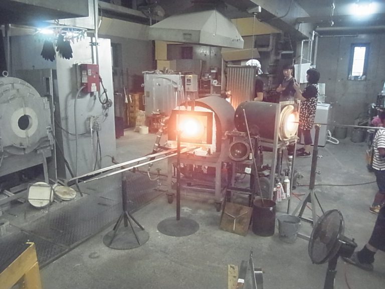 設計室 加藤です 先日 ちーむ三五の皆で硝子吹き体験に行ってきました 小樽の体験工房で、ロックグラスの制作にチャレンジ! ずいぶん前から楽しみにしていたので、行きのバスの中から遠足気分♪ 3か所の窯にそれぞれ3人のスタッフの方がついて 手とり足とり 色々教えていただきながら制作 まずは 棒の先につけたガラスの塊に空気を吹き込みます。 かたちが綺麗に丸っぽく膨らむように、棒を回しながらゆっくり長~く…