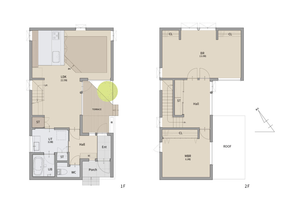 | 間取り | 2LDK・中庭テラス(オプション:間仕切壁追加で3LDK) |