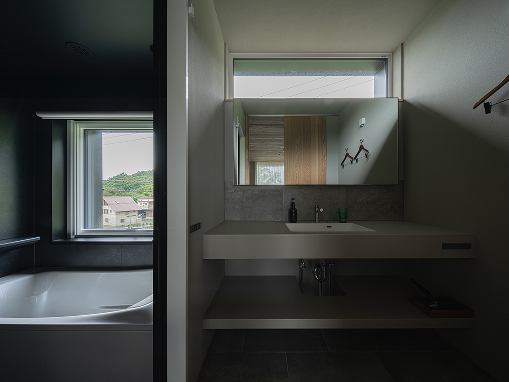 階段を上がると、正面には海を望む大開口の窓が広がります。