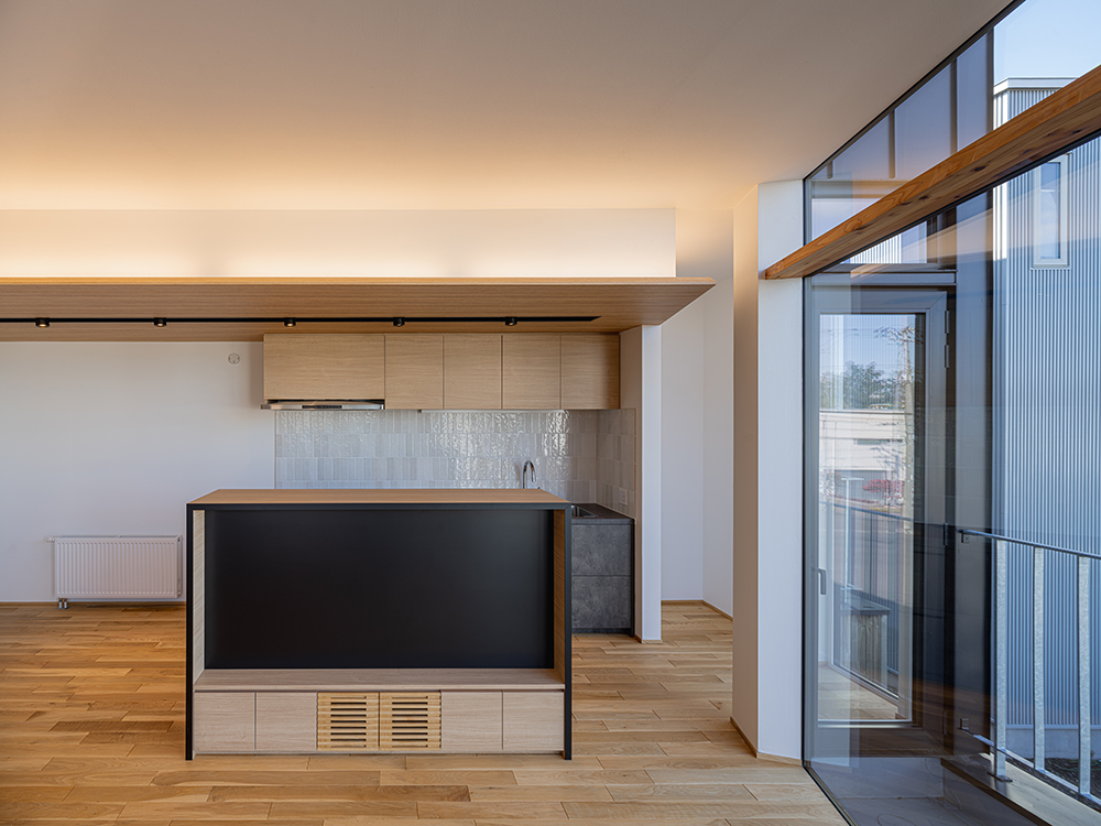 外壁の道南杉や無垢フローリングなど、マンションでありながら木の温もりに包まれる贅沢な空間。