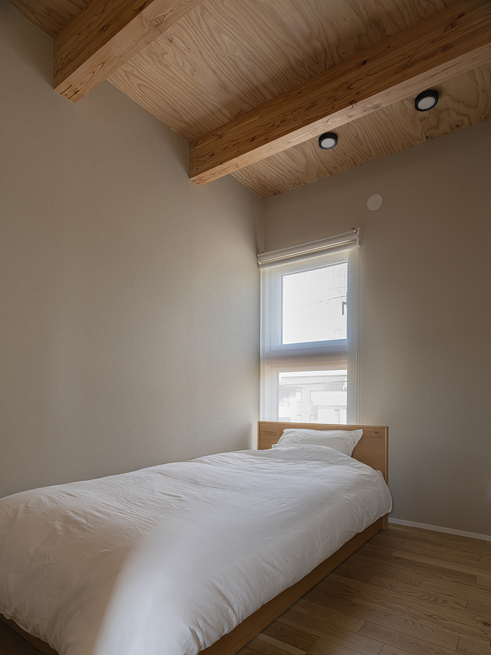 2階には浴室・洗面などのユーティリティや寝室などプライベート空間をまとめ、身支度がすべて完結する効率的な生活動線に。