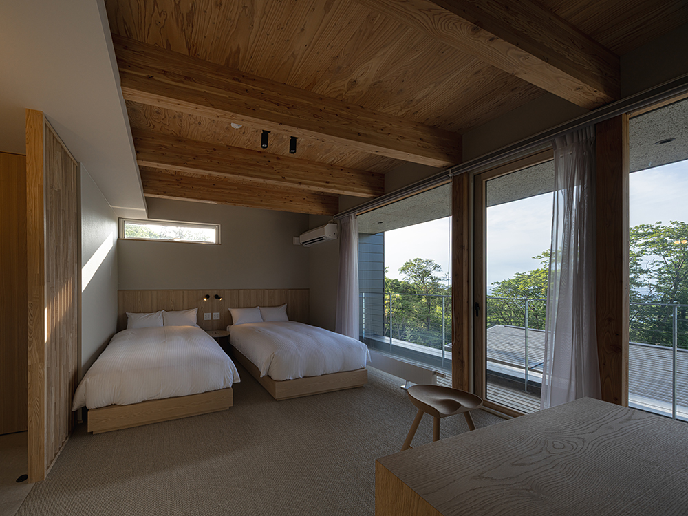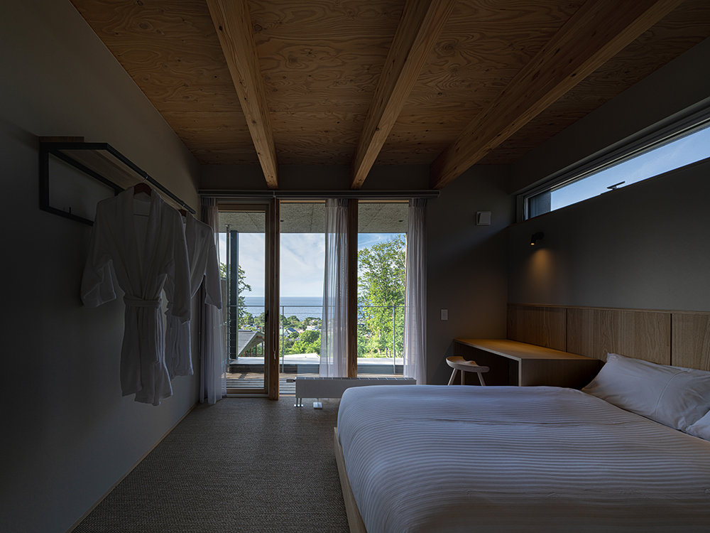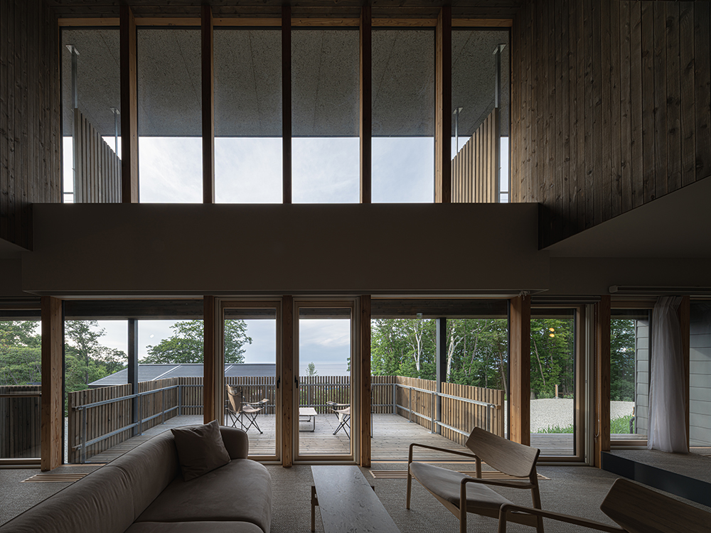 吹抜けに面したフリースペースからは石狩湾を望むことができ、非日常の中で「何もしない贅沢な時間」を味わえます。