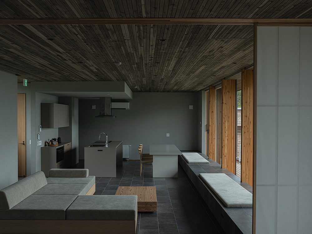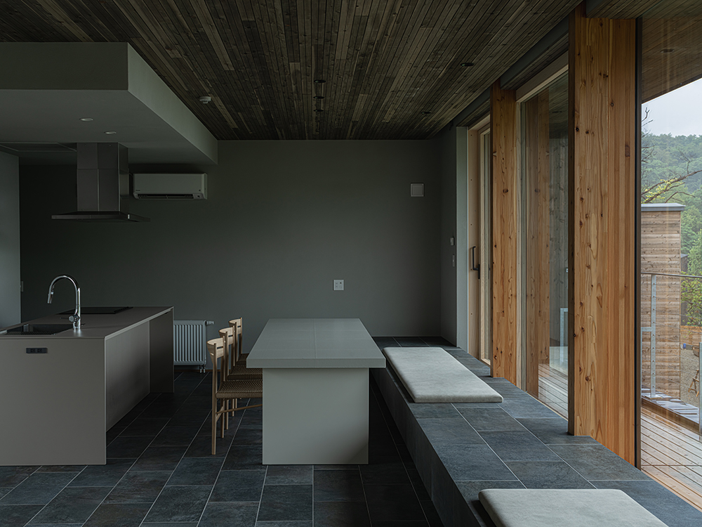 一面の窓に沿ってベンチを設け、どこからでも海を眺められるよう設計しました。