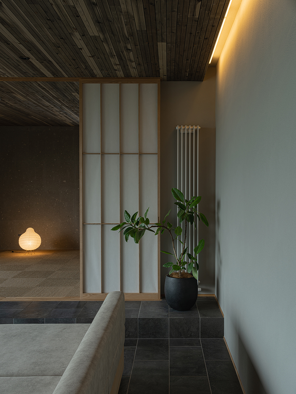 畳や障子、和紙の照明などの和の要素がアクセントとなり、2階全体が落ち着きのある雰囲気に仕上がりました。