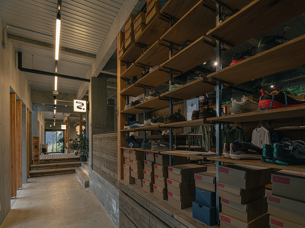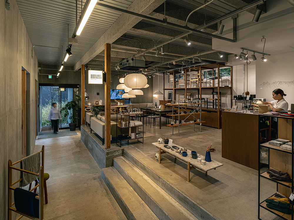三五工務店が設計・施工から運営・プロデュースまでを手がける滞在型複合施設「山郷(さんごう)」にある、北海道の暮らしを提案する個性ゆたかなテナントが入る商業棟。