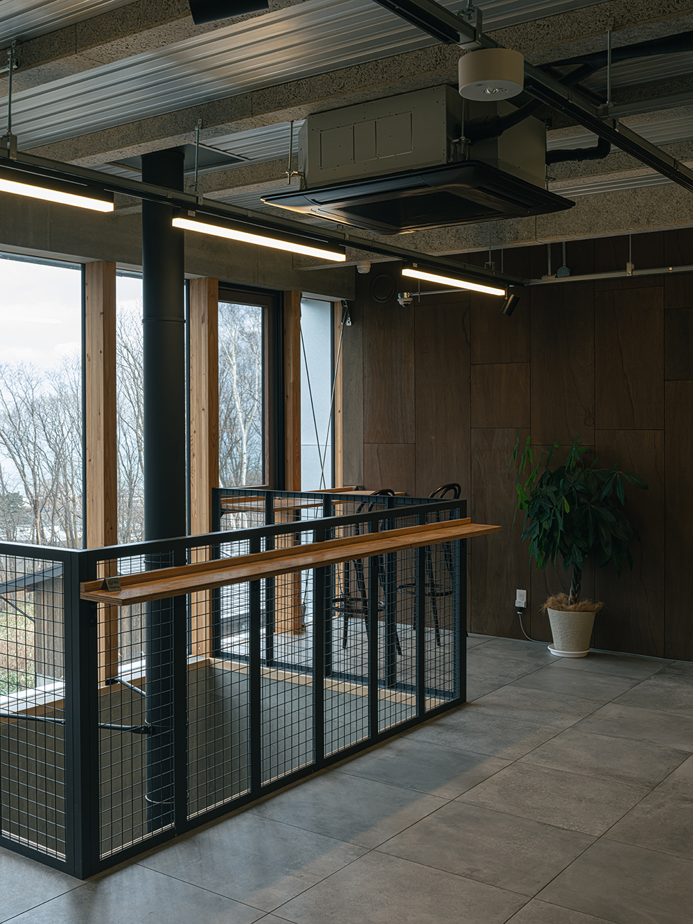 2階の共有スペースや各テナント内から石狩湾を望めるよう、立地の魅力を最大限に活かした窓の配置としています。