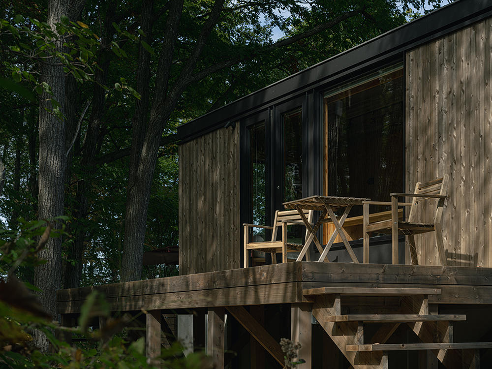 コンテナハウスでありながら工業的な印象を抑え、周囲の自然と調和する佇まいを意識しました。